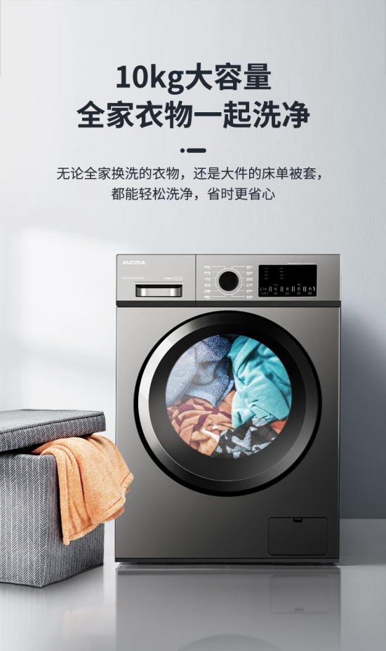 這款洗衣機(jī)擁有10kg的大容量,可以輕松洗凈全家換洗的衣物或是床單被套等大件織物,省時(shí)省心。配備15分鐘快速洗功能,讓健身服、夏季T恤等小件輕污衣物可以及時(shí)洗凈,應(yīng)對(duì)夏季頻換頻洗的清潔需求,杜絕衣物的二次污染。