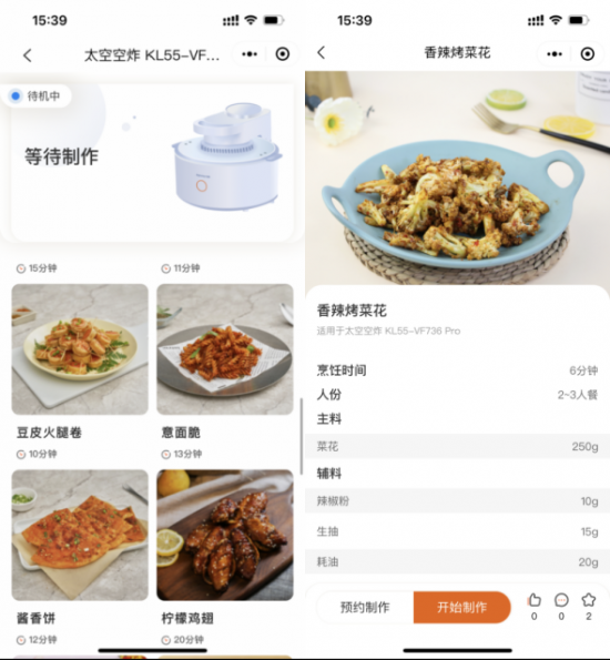 貼心如九陽,在太空空氣炸鍋736Pro的機身操作屏上,附帶了菜譜二維碼,用戶在制作美食前,只要拿手機掃一掃二維碼進入小程序,百款空氣炸鍋食譜隨心挑選,總有一款適合你。