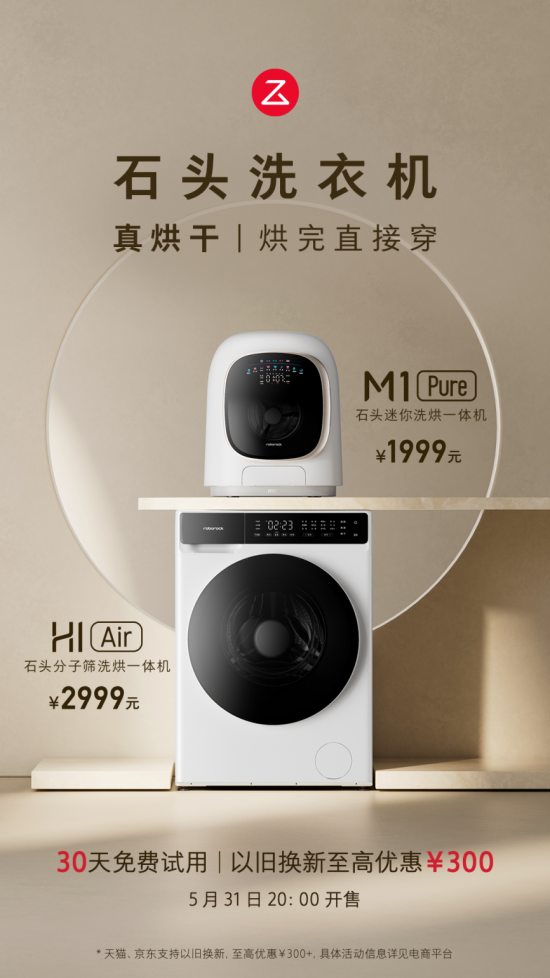 5月31日尾款開(kāi)售,石頭洗烘一體機(jī)H1 Air和M1 Pure羊毛不薅更待何時(shí)?