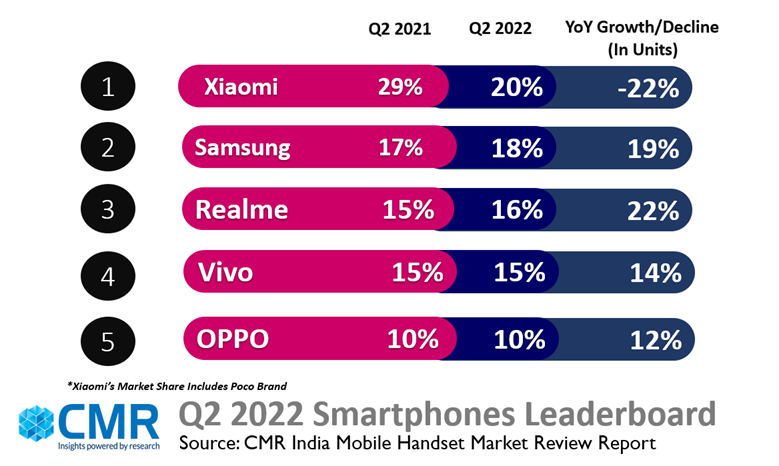 - 2022年Q2印度5G智能手機出貨量大增 小米市場份額居榜首