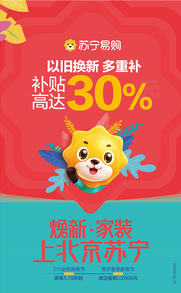 為積極響應循環經濟號召,在助力綠色消費循環的同時充分提升消費者的購物體驗,北京蘇寧將于3月12日-3月15日期間啟動“315全民煥新家電節“活動,不僅為廣大消費者提供北京蘇寧全場家電3.15折起等多重優惠活動,更從“以舊換新”到購買再到安裝一條龍服務,全方位升級服務,保障消費者權益。據悉,此次活動,北京蘇寧聚焦零售賽道,針對消費升級大趨勢,主打家電以舊換新。針對家電品類家庭換新的痛點,特別在活動力度和服務方面進行了升級,消除消費者后顧之憂。