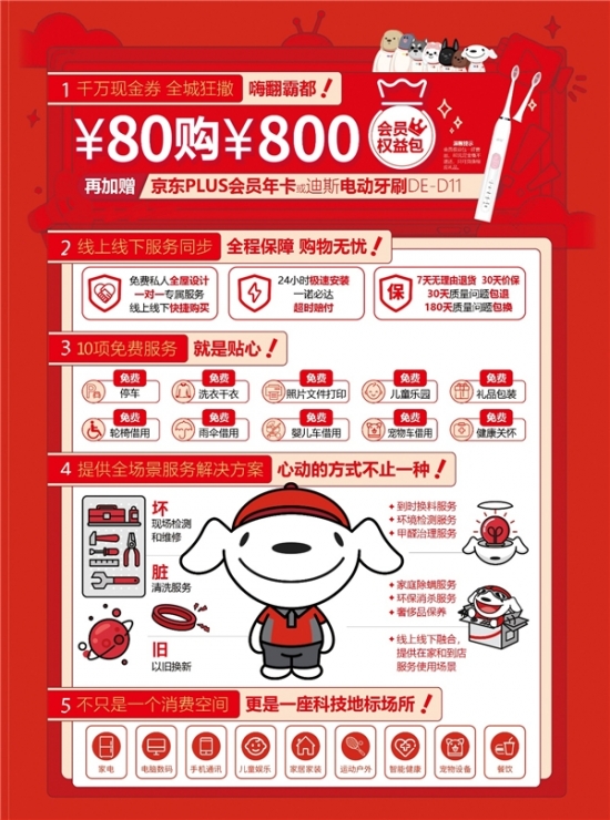 關(guān)注“京東電器超級體驗店合肥店”微信公眾號,參與開業(yè)預(yù)約預(yù)存活動,僅需預(yù)存80元,就可以得到800元的現(xiàn)金券大禮包,并將加贈京東PLUS會員年卡或迪斯電動牙刷DE-D11一支。還有更多福利等著你解鎖。