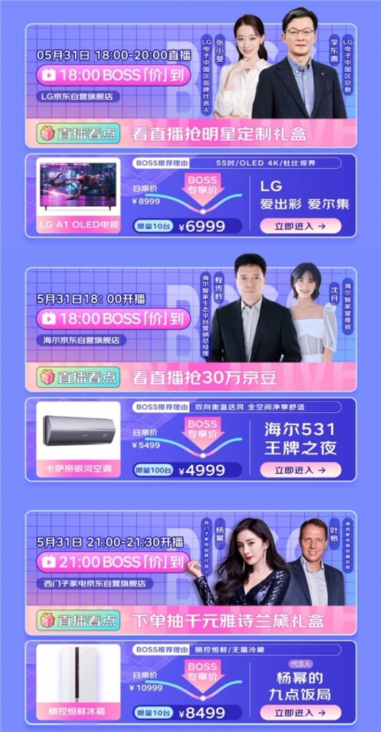京東618家電總裁直播集結號吹響,楊冪、張小斐、景甜帶貨PK