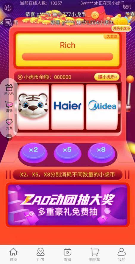 例如,“抽盲盒”活動,讓拆前神秘感、拆時好奇感、拆后驚喜感一步到位。“快樂小虎機,一起贏大獎”活動,不僅滿足了消費者回味童年老虎機游戲的情懷,更能把小虎幣兌換成“真快樂豆”,購物時直接抵扣現金。還有“九九ZAO動團”活動,可以抽取金條、華為手機等福利大獎。