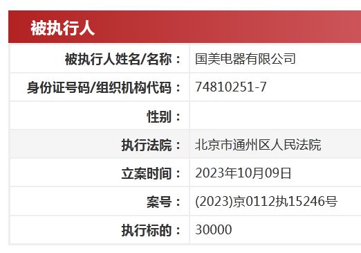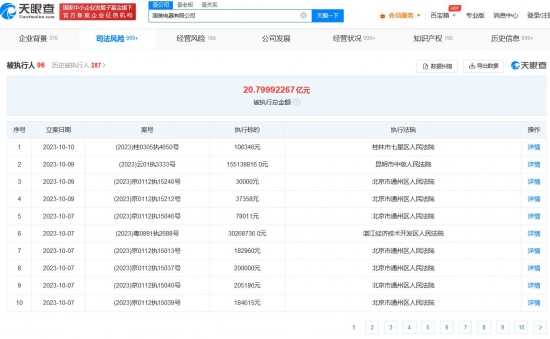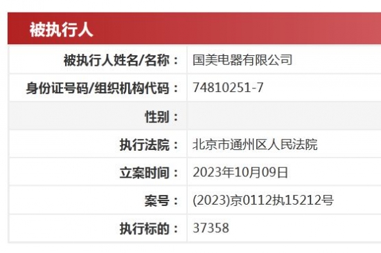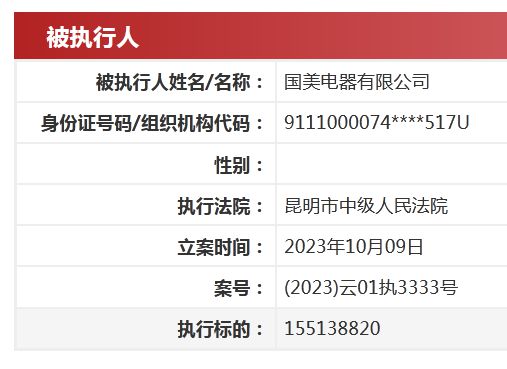 國美電器被強制執行1.55億 10個月累計被執行超20億