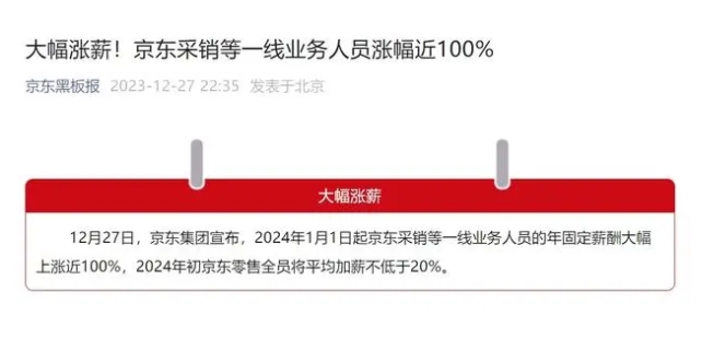 - 電商生死戰,京東“穩軍心” 劉強東:這些人漲薪,100%!