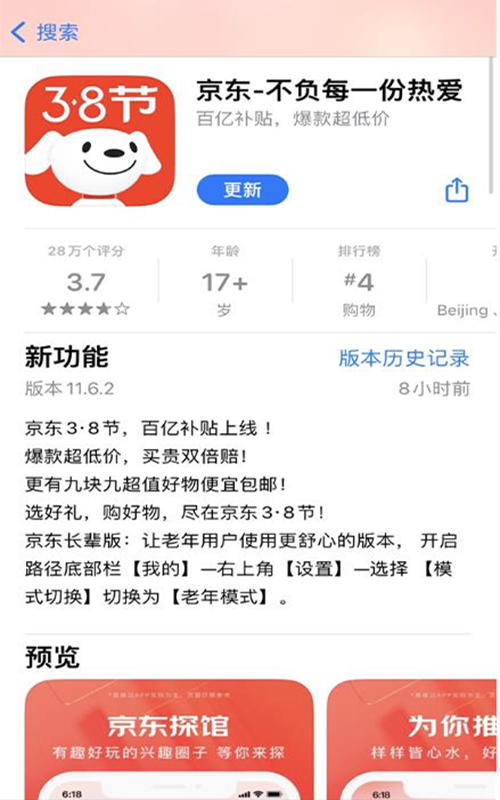 - 京東App更新11.6.2版本,確認百億補貼將于3.8節上線