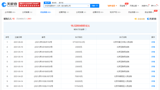 【劃重點(diǎn)】: 6月4日上午消息,天眼查App顯示,近日,樂視網(wǎng)運(yùn)營主體樂視網(wǎng)信息技術(shù)(北京)股份有限公司新增一條被執(zhí)行人信息,案號(hào)(2021)京03執(zhí)恢192號(hào),執(zhí)行標(biāo)的約3.71億人民幣,執(zhí)行法院為北京市第三中級(jí)