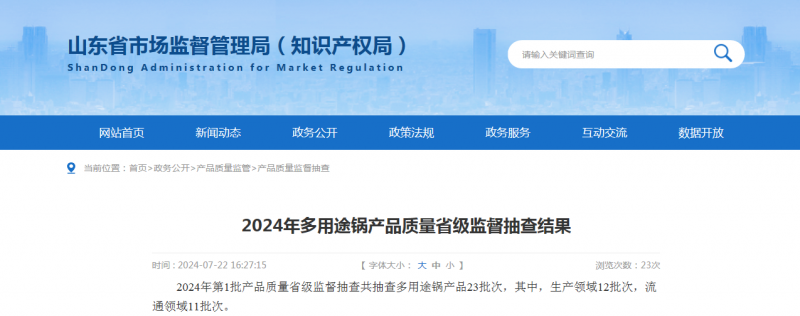 - 【山東】2024年多用途鍋產品質量省級監督抽查結果
