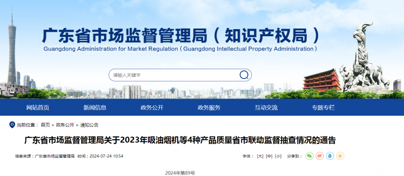 - 根據《中華人民共和國產品質量法》《產品質量監督抽查管理暫行辦法》及《廣東省產品質量監督條例》等相關規定,2023年,廣東省市場監督管理局聯合中山市市場監督管理局組織開展吸油煙機、