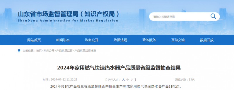- 【山東】2024年家用燃氣快速熱水器產品質量省級監督抽查結果