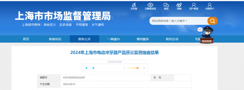 - 2024年上海市電動沖牙器產品質量監督抽查結果