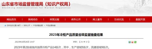 - 山東省市場監督管理局抽查冷柜產品14批次 2批次不合格