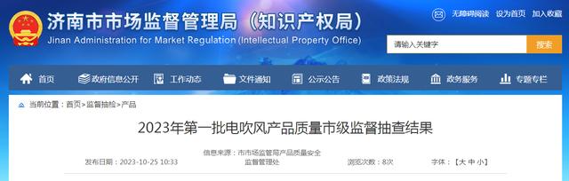 - 濟南市市場監管局公布2023年第一批電吹風產品質量市級監督抽查結果