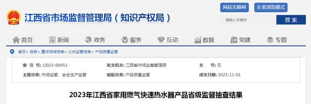 - 江西省市場監督管理局抽查家用燃氣快速熱水器產品20批次 全部合格