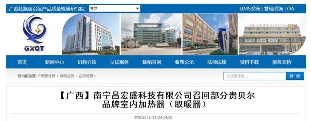 - 南寧昌宏盛科技有限公司召回部分貴貝爾品牌室內加熱器(型號NSL-90)