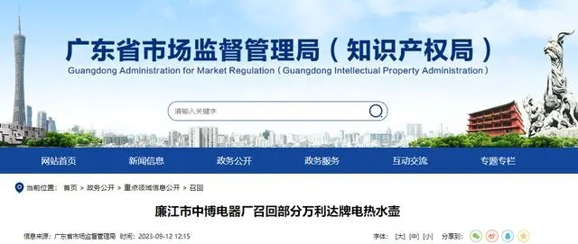 - 據廣東省市場監督管理局網站2023年9月12日消息,日前,廉江市高路華電器有限公司按照《消費品召回管理暫行規定》的要求,主動向廣東省市場監督管理局報告了召回計劃,將自即日起,召回2022年4月8