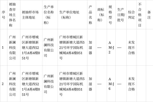 - 2023年廣州市加濕器產品質量監督抽查結果