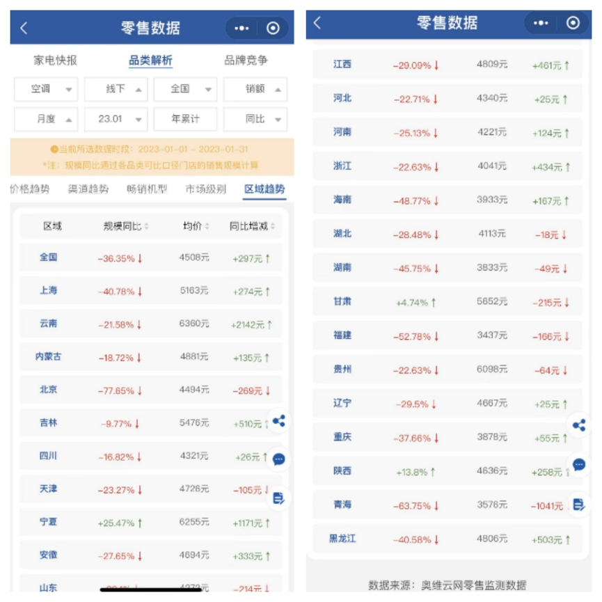 - 1月高端空調持續向上 寧夏陜西甘肅成消費急先鋒