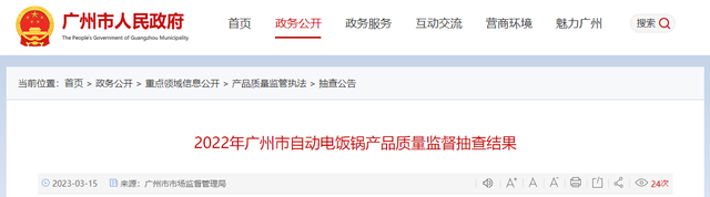 - 據廣州市人民政府網站2023年3月15日消息,廣州市市場監督管理局發布2022年廣州市自動電飯鍋產品質量監督抽查結果。 本期信息顯示,2022年,廣州市市場監督管理局對自動電飯鍋產品質量進行