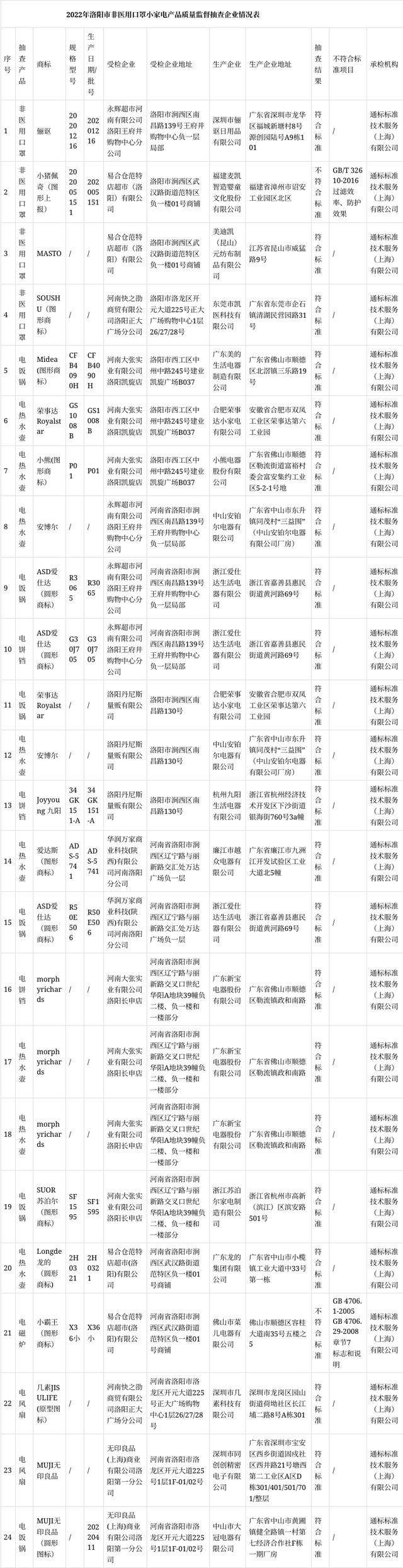 - 2023年3月20日,河南省洛陽市市場監督管理局網站發布2022年第四季度流通領域產品質量監督抽查情況。其中,抽取非醫用口罩、小家電24個批次,不符合標準要求2個批次,不符合標準發現率8.33%。