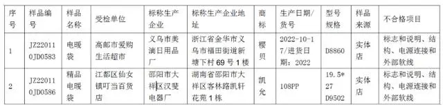 - 抽查冬季取暖小家電20個批次 不符合標準要求4個批次