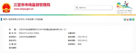 - 2021年,海南省三亞市市場監督管理局對童車、靜態玩具、橡皮泥/彩泥/水晶泥、兒童及嬰幼兒服裝、中小學生作業本、小家電等6種商品進行了產品質量監督抽查。其中檢出標稱臺州市路橋佳鵬電