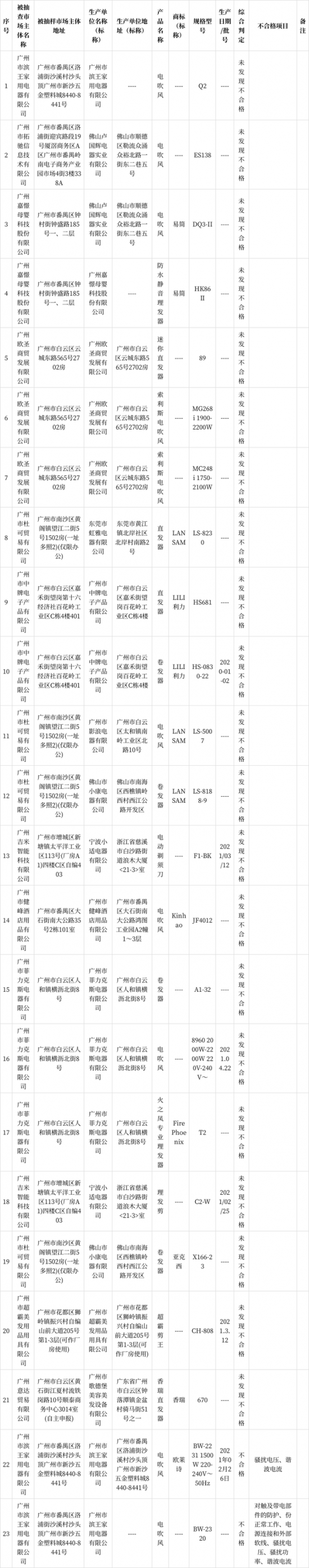 - 廣州市市場監督管理局公布24批次理發、吹風電器具產品抽查結果