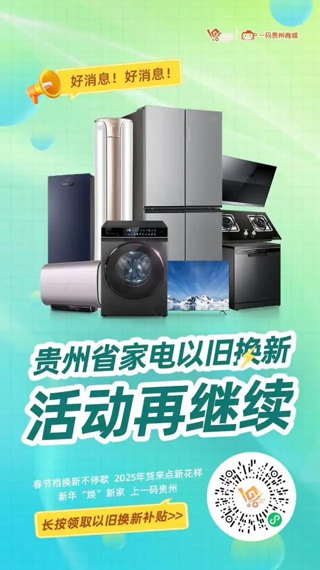 - 2025年以舊換新持續補貼 一碼貴州開啟線上申領通道