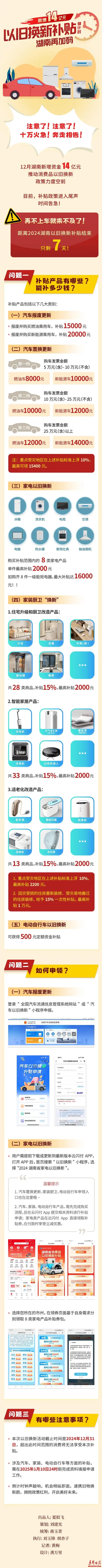 - 新增14億元!以舊換新補貼倒計時,湖南再加碼