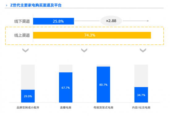 線上了解家電的同時,“線上選購對比再下單”的模式更符合Z世代對便捷、高效的訴求,成為7成Z世代的共同選擇,其中值得注意的是,有3成Z世代用戶偏好在內容/社交電商平臺購買家電。