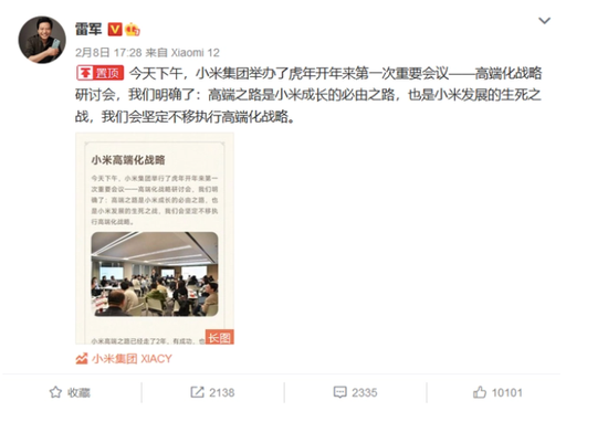 “高端之路是小米成長的必由之路,也是小米發展的生死之戰,我們會堅定不移執行高端化戰略。”今年2月,雷軍重申小米的高端化戰略時,將蘋果視為對標對象。“產品和體驗要全面對標蘋果,三年內拿下國產高端手機市場份額第一。”