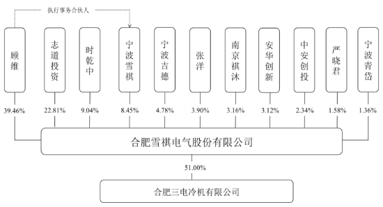 遞表時,董事長顧維直接持有雪祺電氣39.46%的股份,通過寧波雪祺間接持有0.08%的股份,合計持有公司39.54%的股份。同時顧維還為寧波雪祺執行事務合伙人,借此間接控制雪祺電氣8.45%的表決權,合計控制47.91%的表決權。作為雪祺電氣控股股東和實際控制人,顧維今年已經58歲了,持股5%以上股東還包括志道投資和自然人時乾中。