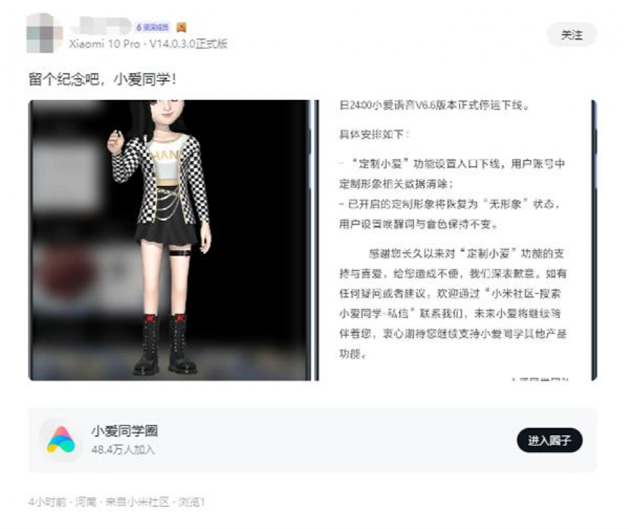 根據小米小愛團隊于今年6月10日發布的公告,由于產品策略調整,小米的“定制小愛”功能將于2023年7月10日24:00正式停運下線。
