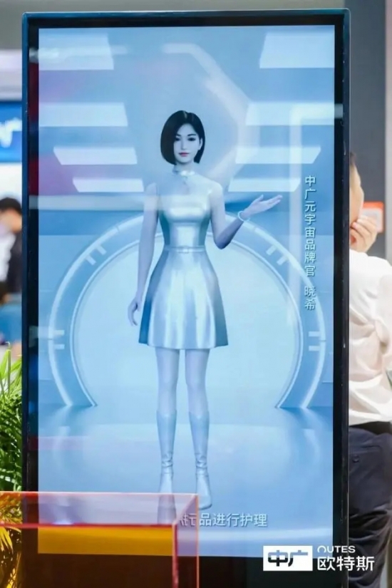 無獨有偶,去年年初入職中廣電器的虛擬數字人曉希,也作為中廣元宇宙品牌官在AWE2023現場擔負起了為公司宣傳的工作,與多家媒體合作,帶領大家實地參觀與云逛展。此外,她還在各展臺為大家介紹產品知識,讓觀展者可以更直觀生動地了解產品和解決方案的場景化應用。