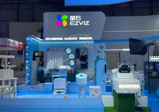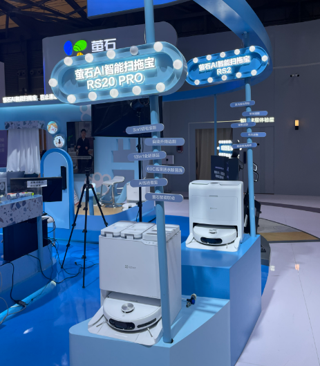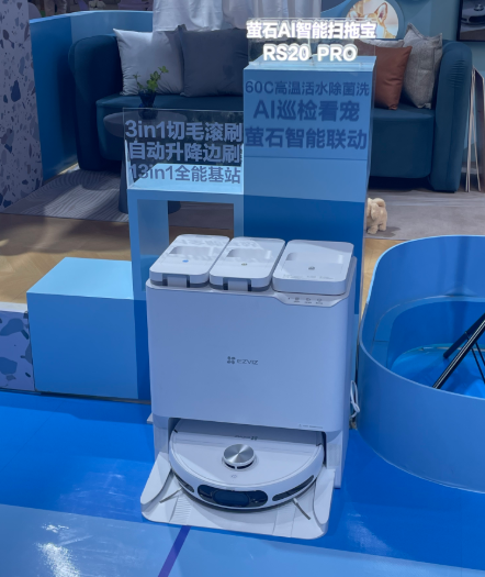 螢石在AWE大會上展出了包括螢石AI智能掃拖寶 RS20 PRO、AI掃拖一體機 RS2、智能除菌洗地機RH1、超能除菌洗地機RH2等多款智能清潔產品。