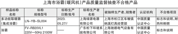 - 上海:Panasonic等2批次浴霸樣品不合格