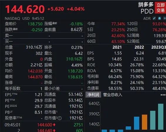 - 北京時間11月29日晚間,美股拼多多一度漲超4%,市值到達1921億美元,一度超越阿里巴巴,成為美股市值最大中概股。截至發稿,拼多多漲幅收窄,最新市值回落至1875億美元。 昨日,拼多多公告,第三季度
