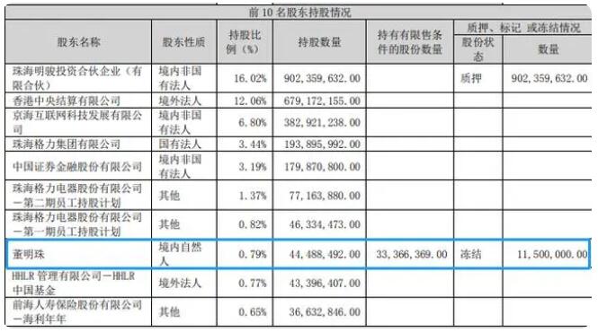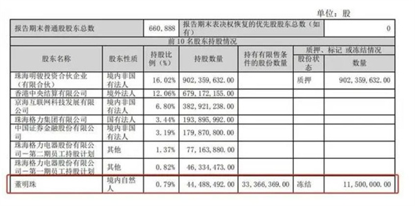 - 董明珠1150萬股股份遭凍結,市值約4億元