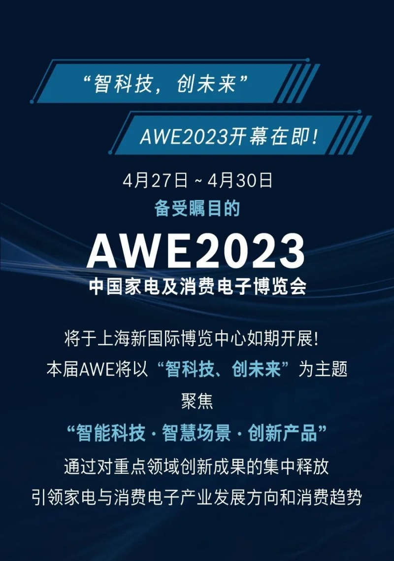 - 4月27日-30日,備受關注的2023中國家電及消費電子博覽會(AWE 2023)即將在上海新國際博覽中心舉辦。作為全球三大頂級家電與消費電子展,AWE將展示智能家電、智能家居、消費電子、智慧娛樂、