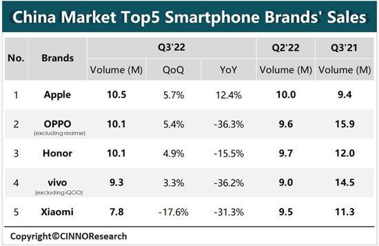 - 2022年,手機終端市場烏云壓頂。 CINNO Research統計數據顯示,今年第三季度,中國大陸市場智能手機銷量約為6220萬臺,同比下降20.8%,是2015年以來最差的“第三季度”。 萎靡不