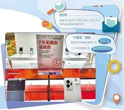 - 數據顯示,近5年來,我國平均每年產生4億部以上廢舊手機;“十四五”期間,手機閑置總量預計達60億部。龐大的存量為手機回收市場提供了廣闊空間。不過,目前二手手機行業面臨著交易市