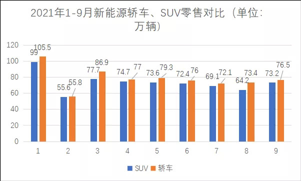 根據(jù)乘聯(lián)會數(shù)據(jù)顯示,今年1-9月新能源汽車零售中,轎車零售數(shù)量均高于SUV,當然這里的背景還是兩種車型處于供需并不平衡的狀態(tài),這是否暗示轎車市場還有更大的開發(fā)空間呢?