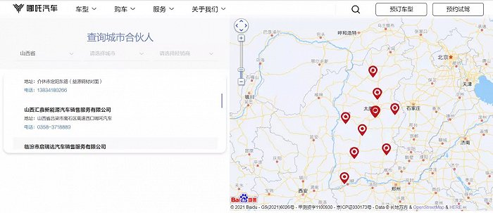 以山西為例,山西共十一個城市,哪吒汽車共在該省擁有線下門店10家,除了省會城市太原有一家直營店,其余均為經(jīng)銷商門店,且較為平均的分布在各個地級市中。這也與大部分車企布局不同,省會城市并沒有聚集了太多資源,得以讓三四線城市分得更多資源。