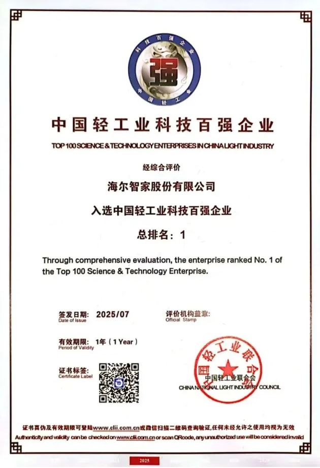 就在最近,科技圈公布了兩份“重量級(jí)”榜單:在“中國(guó)輕工業(yè)科技百?gòu)?qiáng)企業(yè)”中,海爾智家位列榜首;在“2025 年上半年全球智慧家庭發(fā)明專利排行榜(TOP100)”上,海爾智家位居第一。