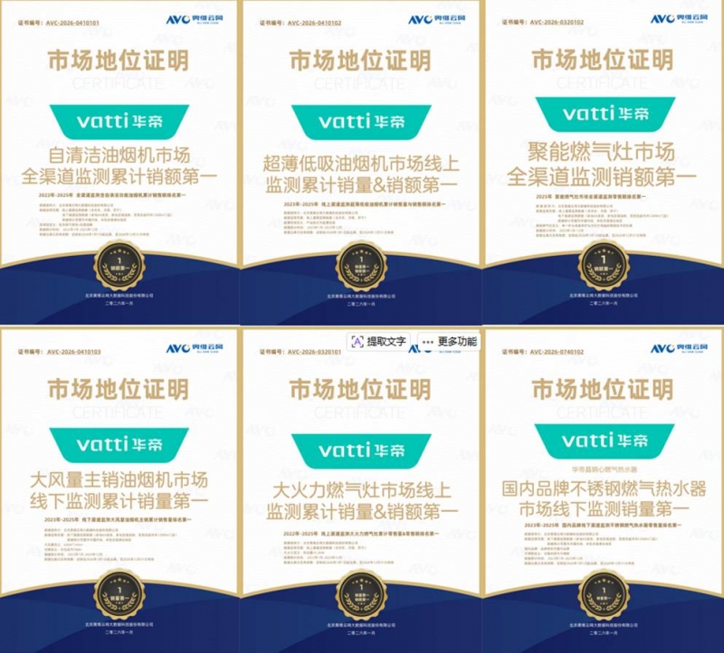 - · 全域領(lǐng)跑!華帝斬獲多項權(quán)威認(rèn)證,四大核心品類登頂2025廚電市場